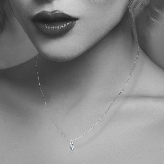 Music Note Sterling Silver Necklace with Cubic Zirconia