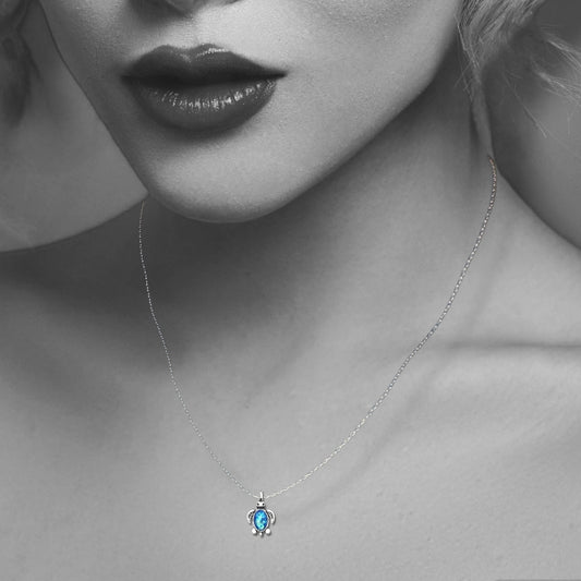 Sea Turtle Sterling Silver Necklace with Imitation Opal