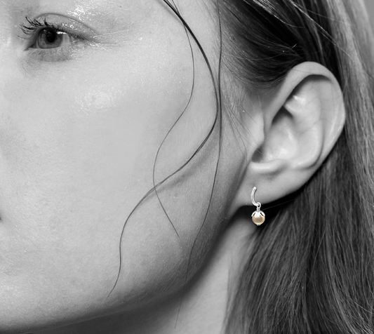 Silver Ear Hoops with Hanging and Genuine European Pearl