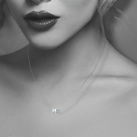 Silver Pisces Necklace with Crystal