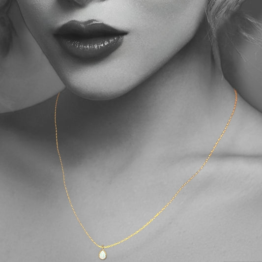 Gold Pear Necklace with Synthetic Opal