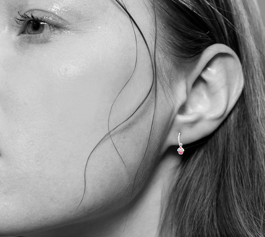 Silver Ear Hoops with Hanging Cupcake and Crystal