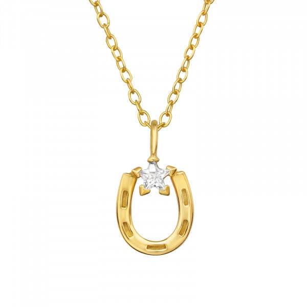 Horseshoe Sterling Silver Necklace with Cubic Zirconia