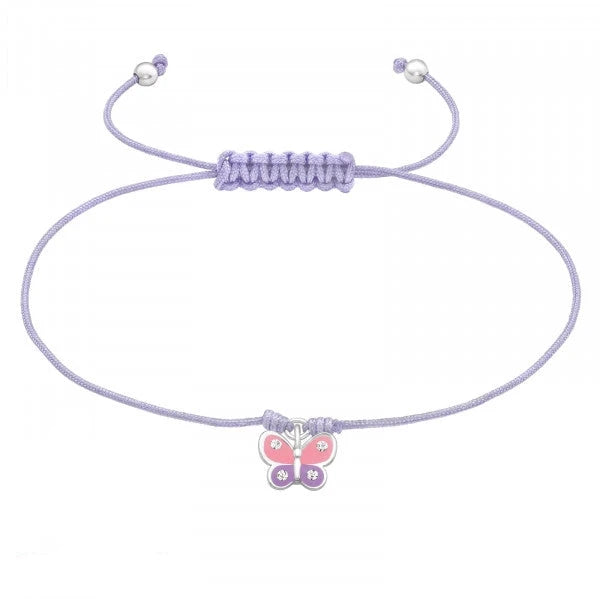 Silver Butterfly Adjustable Corded Bracelet with Crystal
