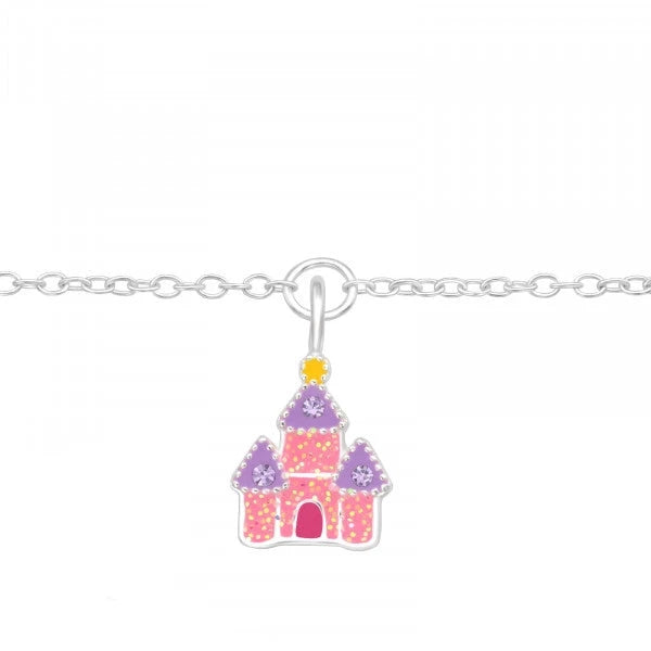 This Silver Castle Bracelet with Crystal will make your little one feel playful and enchanted, adding a touch of magic to her day.
