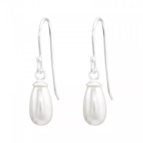 Silver Oval Earrings with Synthetic Pearl