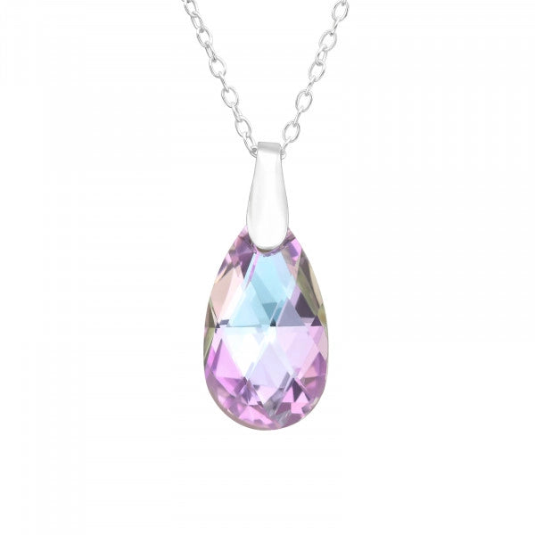 This stylish teardrop necklace with a blue-purple crystal symbolizes a harmonious blend of calmness, health, love, hope, and spiritual growth.
