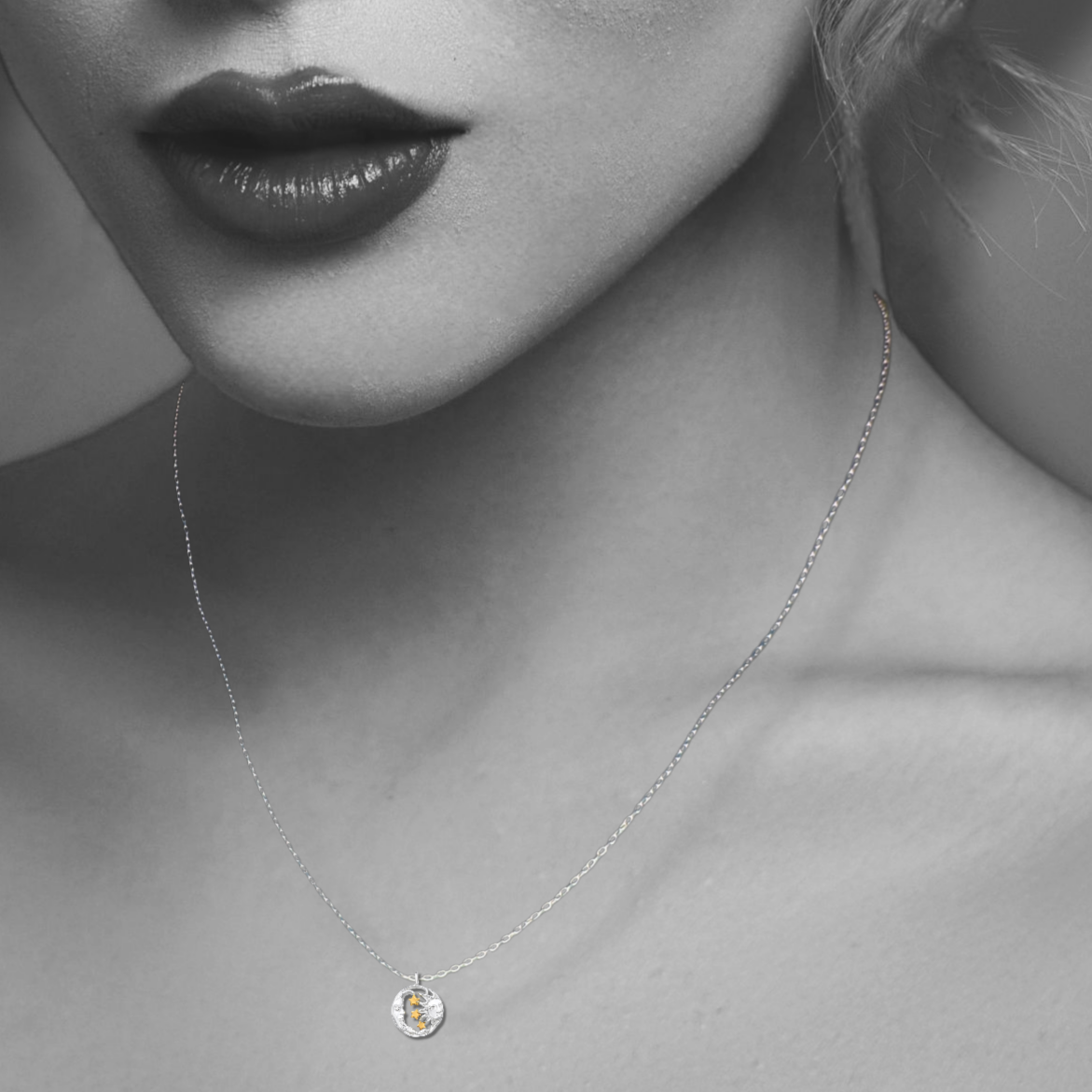 This beautiful Sun and Moon with Stars Necklace symbolizes the balance between gentleness and strength. It represents the harmony between consciousness and chi power, perfectly aligned with the natural cycle of life in the universe."